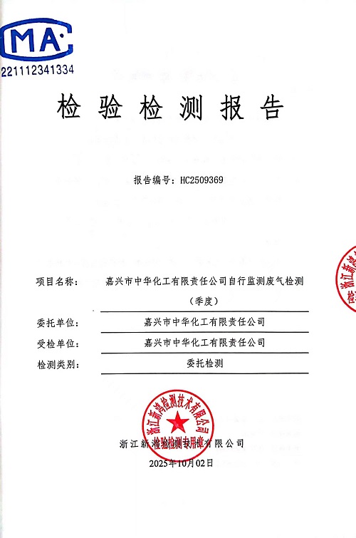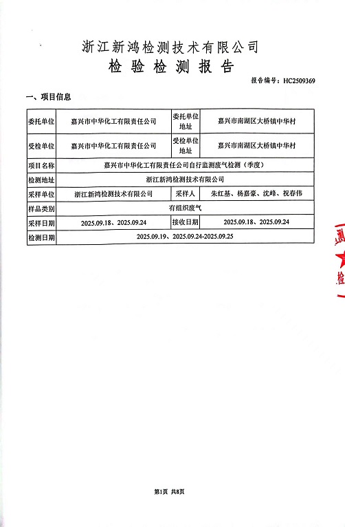 報告名稱:中華化工3季度廢氣檢測報告
