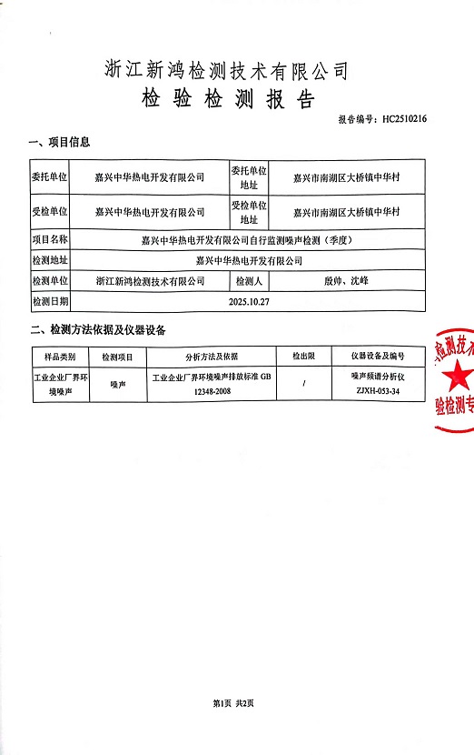 報告名稱:中華熱電噪聲4季度檢測報告