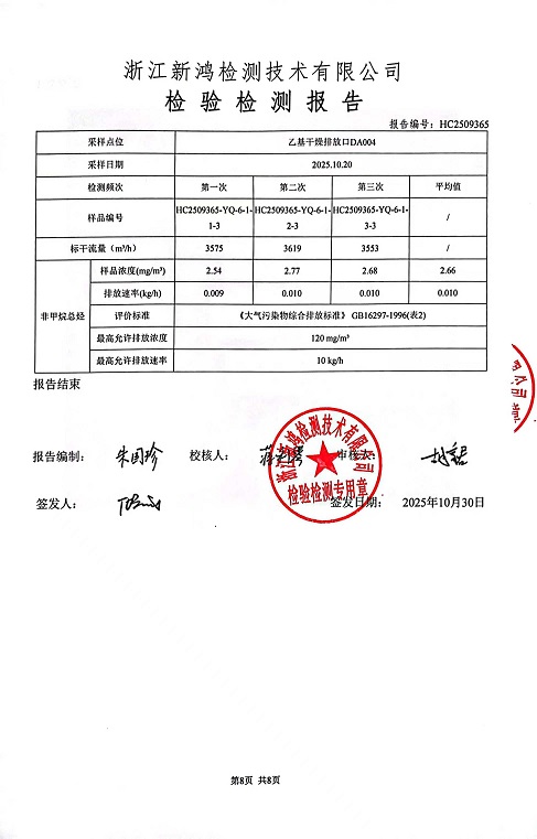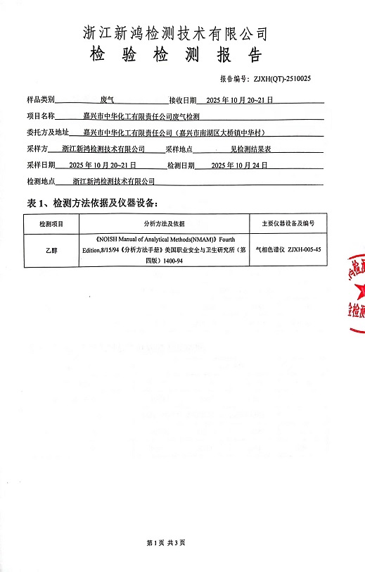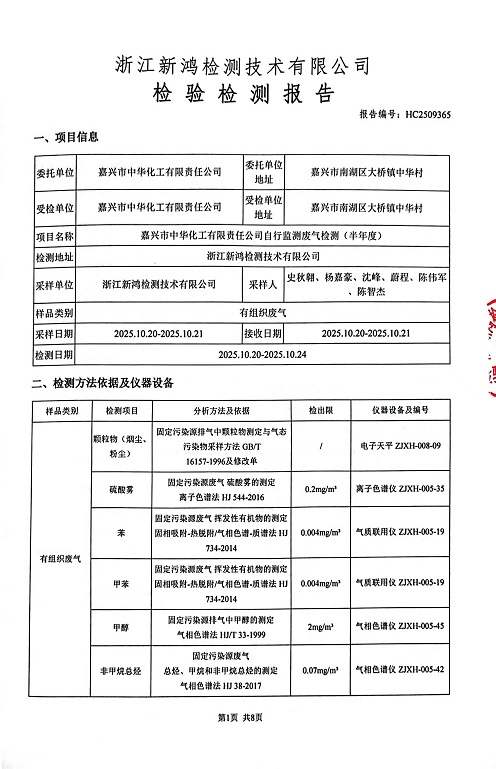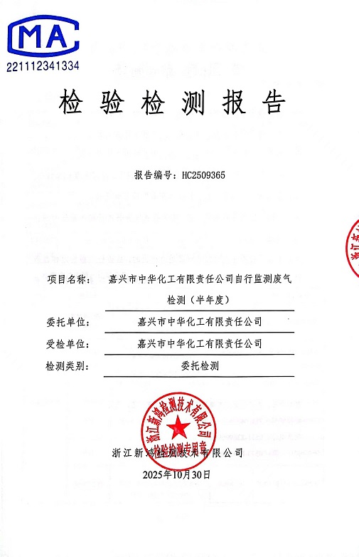 報告名稱:中華化工下半年檢測報告