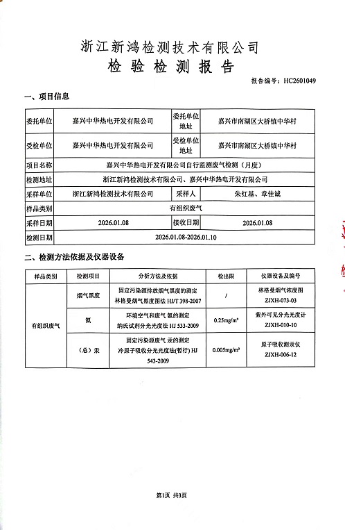 報告名稱:中華熱電26年1月廢氣檢測報告