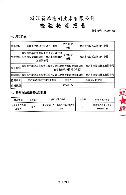 報(bào)告名稱:中華化工、縱華、豐杰26年1季度噪聲檢測(cè)報(bào)告