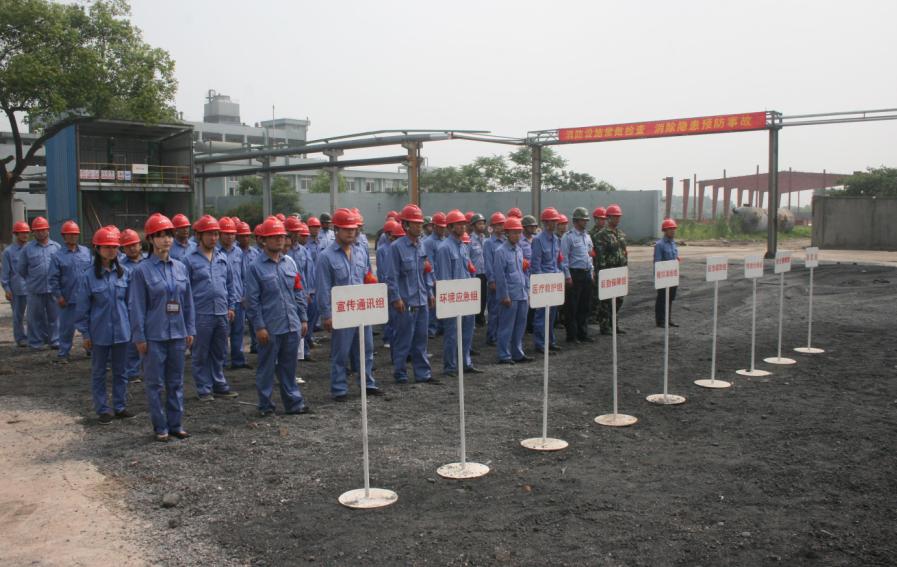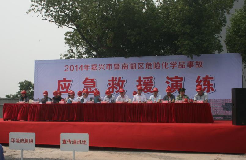 6月12上午,嘉興市暨南湖區(qū)危險化學品事故應(yīng)急救援演練在我公司舉行。本次演練由南湖區(qū)副區(qū)長許翔擔任總指揮,嘉興市安監(jiān)局、民防局,南湖區(qū)安監(jiān)局、環(huán)保局、消防大隊,大橋鎮(zhèn)人民政府等多家單位的主要領(lǐng)導出席了本次演練。南湖區(qū)相關(guān)部門、鄉(xiāng)鎮(zhèn)街道安監(jiān)站負責人、;髽I(yè)負責人和安管員等130余人觀摩了本次演練。