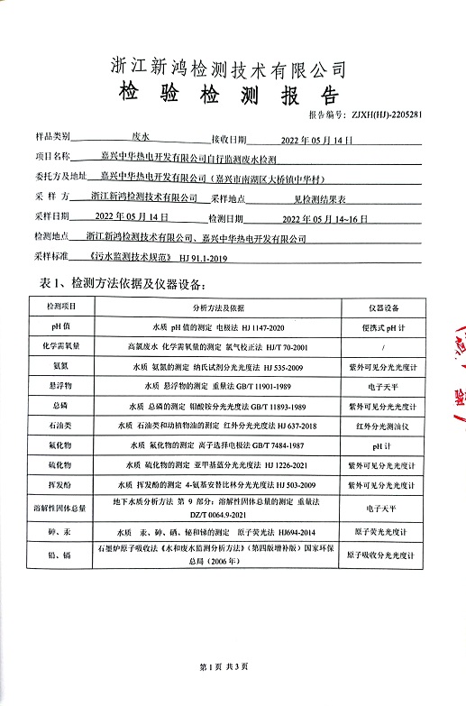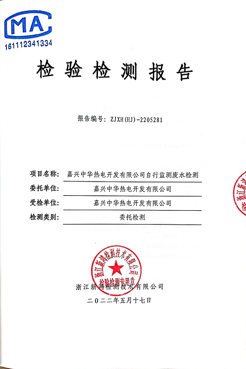 報告名稱:中華熱電2022.5月廢水檢測報告